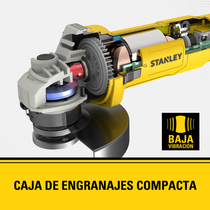 La Amoladora Angular Stanley SG6115 es la herramienta ideal para quienes buscan potencia y precisión en sus trabajos de corte y desbaste. Con un motor de 620 W y una velocidad constante de 12,000 rpm, esta amoladora se destaca por su rendimiento eficiente y su capacidad para manejar discos de 115 mm, permitiendo realizar cortes profundos de hasta 56 cm.