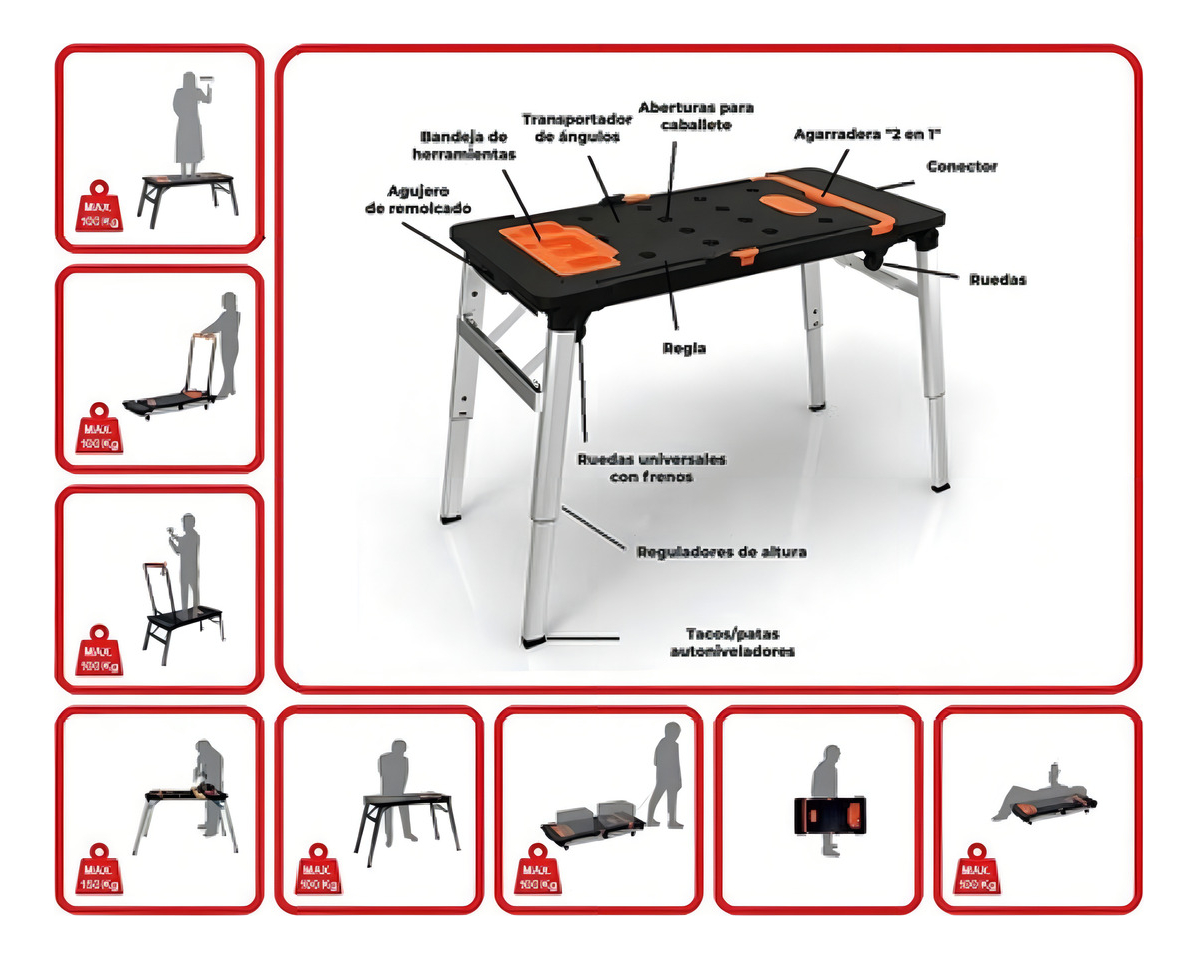 Banco Trabajo Convertible Lusqtoff Btcl7-8 Mesa Carro Caballete 7en1