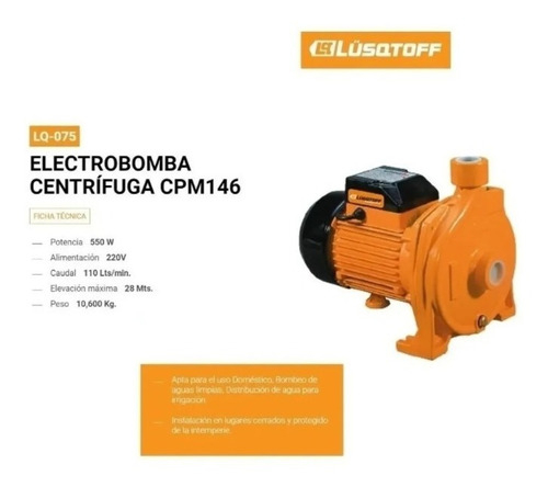 La bomba Lüsqtoff CPM146 genera mayor presión, lo que permite que los líquidos suban hasta una altura máxima de 28m.