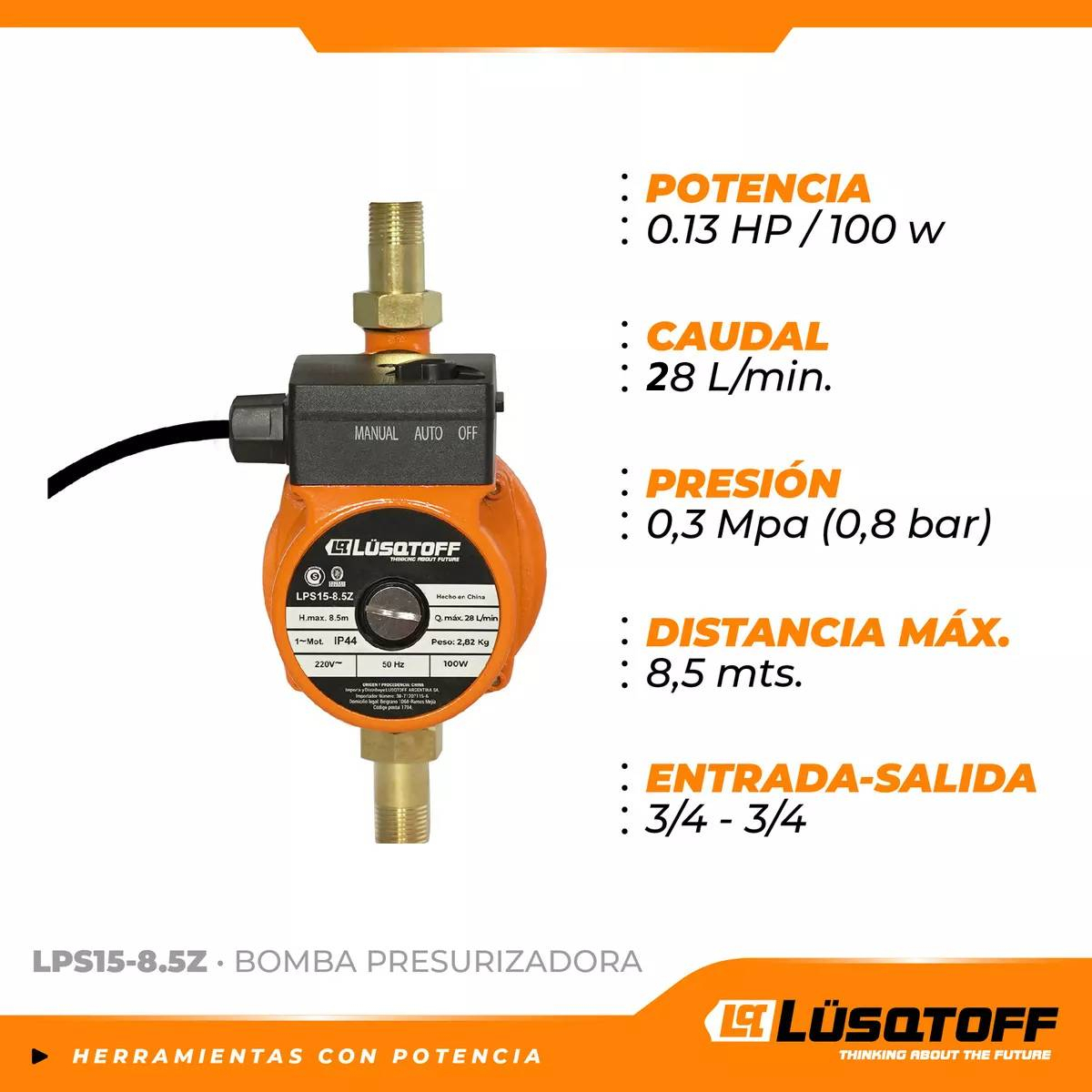 Bomba Elevador Presión Presurizadora 8.5m Lusqtoff Automátic
