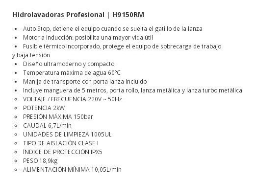 Hidrolavadoras Profesional | H9150RM