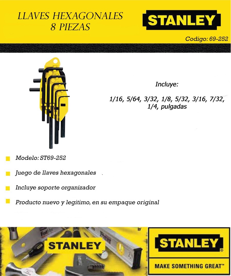 Juego Llave Allen 1/16 A 1/4 8pz Stanley 69-252 – Herracor