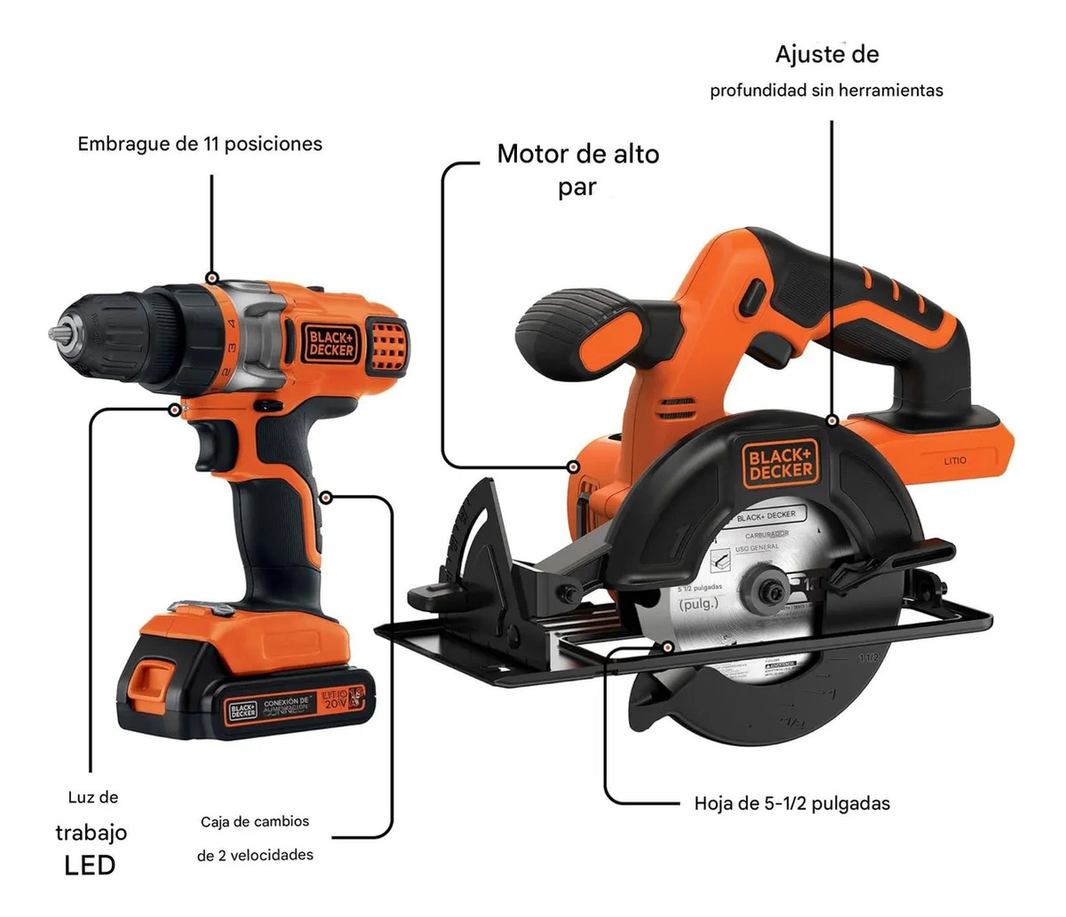El conjunto de herramientas Black+Decker BDCD220CS es la solución ideal para quienes buscan calidad y eficiencia en sus proyectos de bricolaje y construcción. Este conjunto incluye una sierra circular y un taladro, ambos diseñados para ofrecer un rendimiento excepcional y duradero. Con un diseño ergonómico y ligero, cada herramienta permite un manejo cómodo y preciso, facilitando el trabajo en diversas superficies y materiales.